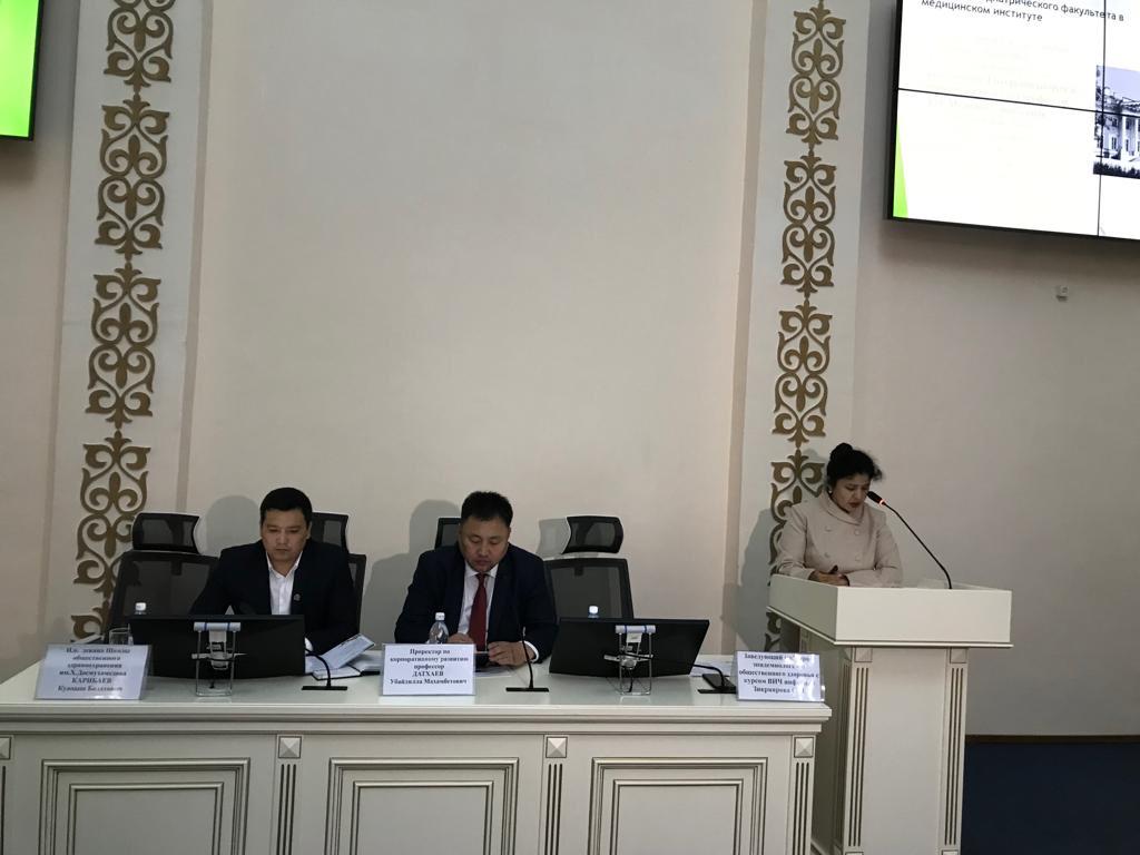 С приветственным словом выступили проректор по корпоративному развитию университета профессор У.М. Датхаев и декан Школы общественного здравоохранения К.Б. Карибаев.
