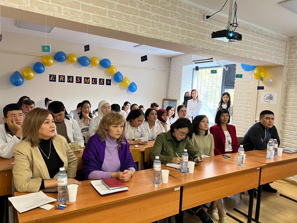 On October 4, 2022, an event dedicated to the promotion of the Erasmus program among students was held at the Department of Public Health. The organizers of the event are the participants of the Harmonee scientific project within the framework of Erasmus+, associate professors of the department Aitmanbetova A.A., Kozhekenova Zh.A., Zhakupova M.N.