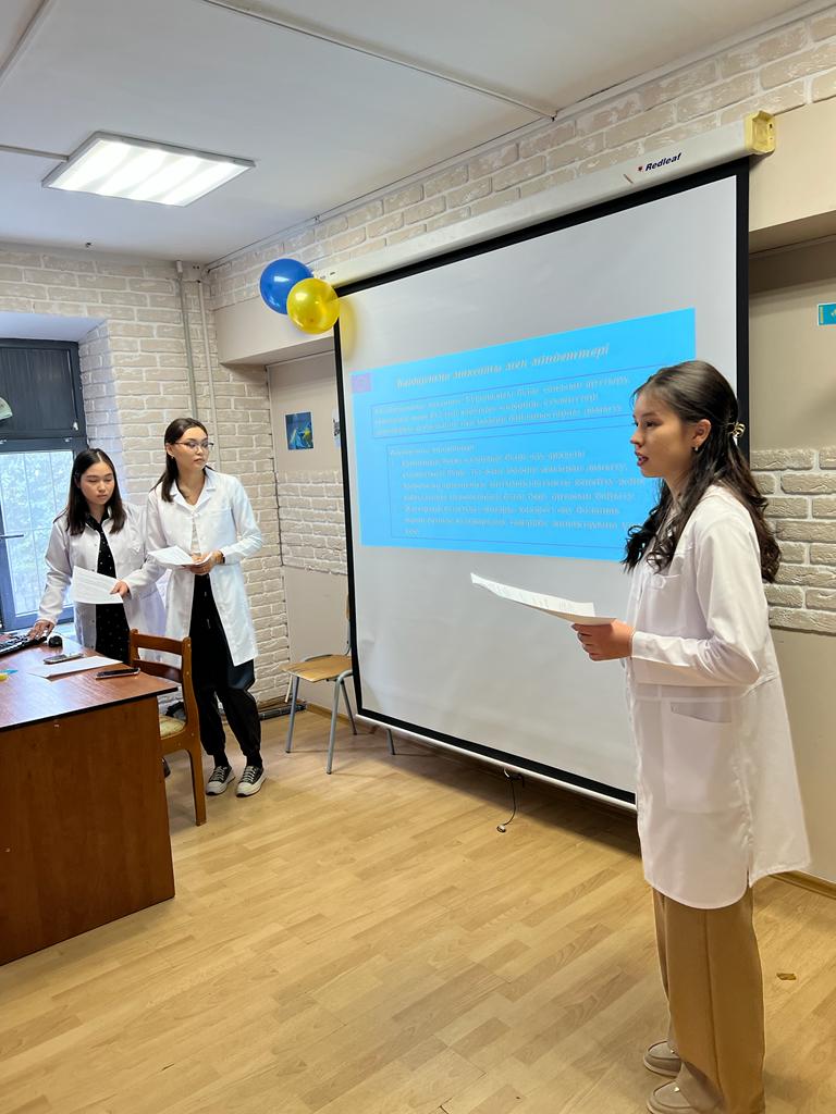 Each item of the informational and introductory block was accompanied by a quiz, feedback in a playful way. Guests of the event: Professor of the department Toguzbayeva Karlygash Kabdeshevna, lecturer of the department Abzal Zhumagalievich, as well as Head of the Department of Public Health Kozhekenova Zhanat Asetovna expressed their opinions and wishes for the further development and integration of the program. Students of the OZ19-001-1 and other groups of the 4th year of the specialty “public health” actively participated in the organization of the event.