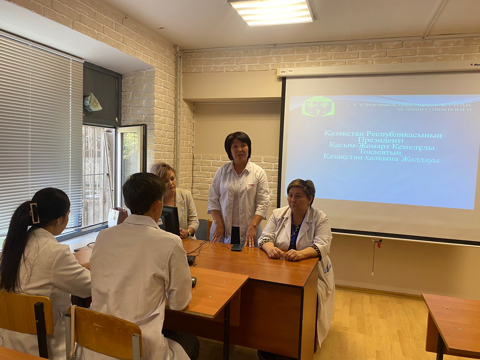 On September 20, 2022, an open lesson was held at the Department of Public Health of the Kazakh National Medical University named after S. D. Asfendiyarov, dedicated to discussing the Message of the President of the Republic of Kazakhstan K. K. Tokayev “Unity of the people and systemic reforms – a solid foundation for the prosperity of the country”. Participants of the open lesson: head of the department Kozhekenova Zhanat Asetovna, head teacher Begimbetova Gulshat Altayevna, responsible for educational work Kusainova Elmira Izbasarovna and 3rd year students of the specialty of public health.