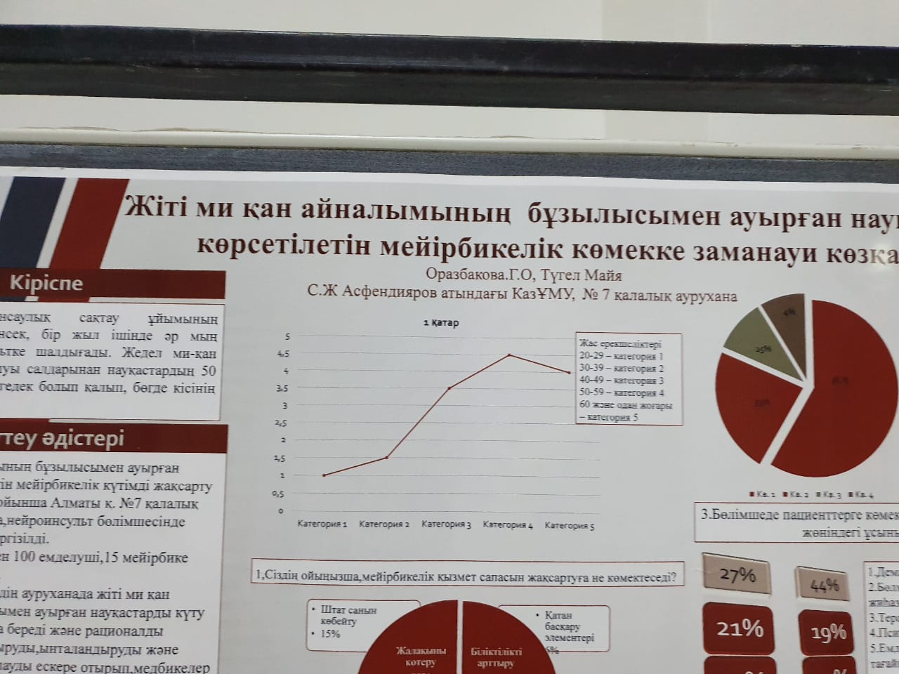Within the framework of the conference, a poster presentation contest was held: 1st place Tugel Maya 1st year undergraduate specialty in Nursing, 2nd place Tokaev Rishad 1st year undergraduate specialty in Nursing, 3rd place Meyirbek Guldana, 2nd year student, specialty «Public Health»