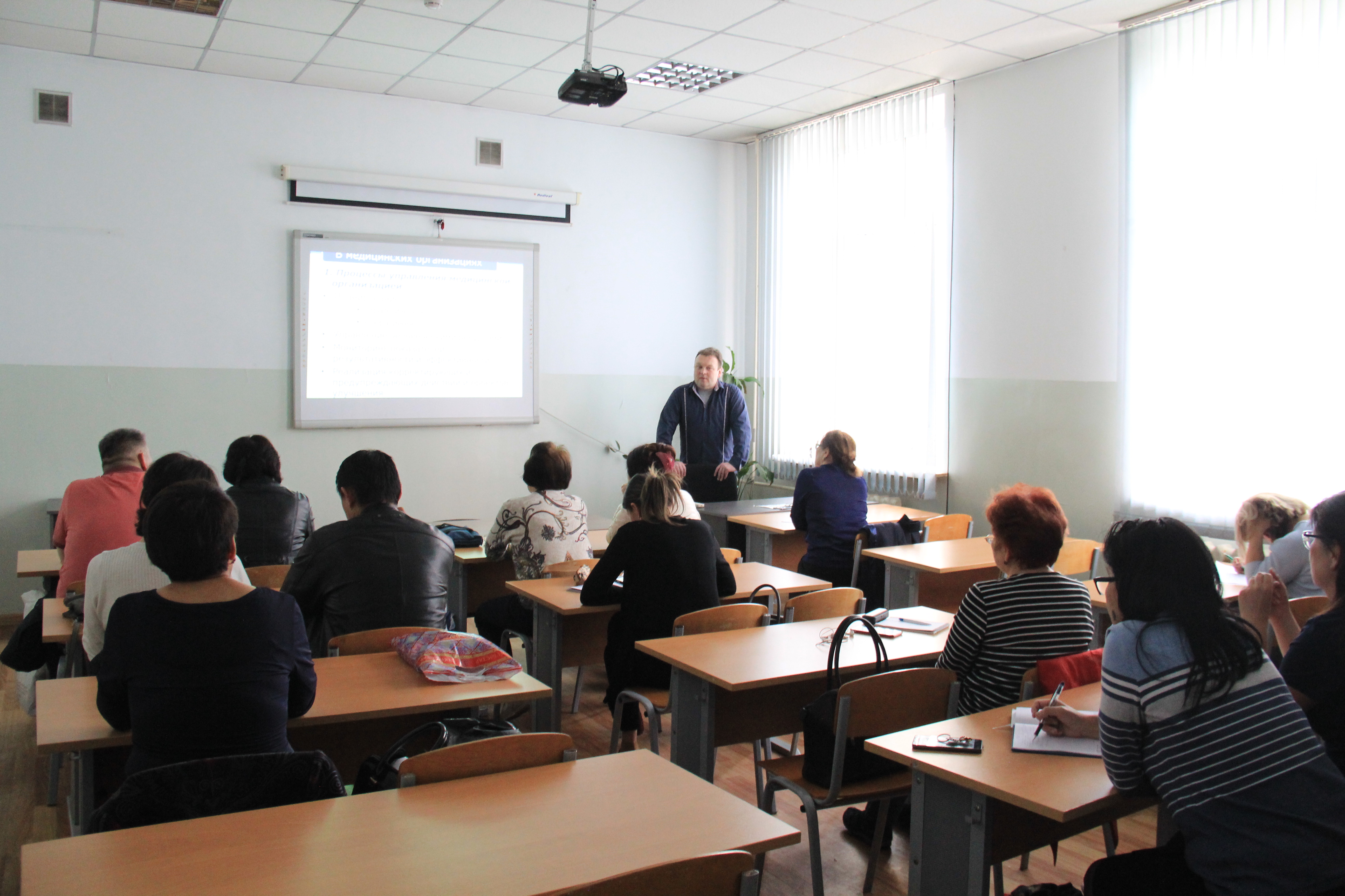 Leading specialists and experienced healthcare organizers were involved to lectures and seminars. Thus, professor E.A. Abylkasymov, a member of supervisory board, doctor of medical sciences, gave a general review of the state and prospects of health development. The head of Center on Continuing Professional Education, MD, professor K.K. Kurakbayev reported about assessment of medical care’s quality in compulsory social health insurance’s conditions. General Director of ExpertZdravServis LLC, E.G. Knyazev presented the Russian experience of implementing and evaluating the quality management system in medical organizations. A.R. Manapbaeva, the head of Department of medical care quality’s monitoring of OSMS branch in Almaty. V.A. Krementsov, well-known lawyer, gave the rules of medical services’ examination. S.U. Umarova, associative professor of Department of Internal diseases’ propedeutics, accredited independent expert familiarized with examples from her own expert practice. The training was also attended by the head and staff of Department of Public Health and Health care.