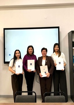 The event also addressed the strategic significance of screening programs in improving population health, the necessity of a preventive approach in the modern healthcare system, an overview of screening programs in Kazakhstan, and specific examples of their effectiveness. Third-year students of the Public Health program, Amyna Nurkhaim and Eldana Orynbas, presented detailed analyses of the role of early diagnosis in promoting sustainable healthcare development, while fourth-year student Aierke Amir shared data on pediatric screening and its significance for disease prevention.