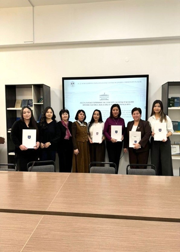 The primary objective of the event was to educate students on the importance of screening programs within the framework of Sustainable Development Goal №3 – «Good Health and Well-Being», to demonstrate the role of early disease detection, and to enhance students’ responsibility for their own health. Participants included representatives of S.D. Asfendiyarov Kazakh National Medical University, physicians from City Clinical Hospital №5, faculty members, master’s students, and undergraduate students.