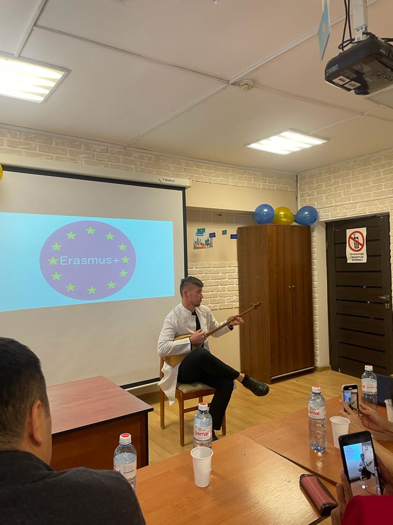 Іс-шараның мазмұнын ашу барысында қазақ және ағылшын тілдерінде ауызша баяндамалар жасалды. ҚДС19-001-1 топ студенттері Ербулатова Г., Сәбит М. «Erasmus+» бағдарламасының мүмкіндіктері туралы, оның ішінде Қазақстандағы жұмыс бағыттарын (жоғары білімдегі әлеует, Эразмус Мундус магистрі, халықаралық ұтқырлық және Жан Моне бағдарламасы) маңызын атап өтті.